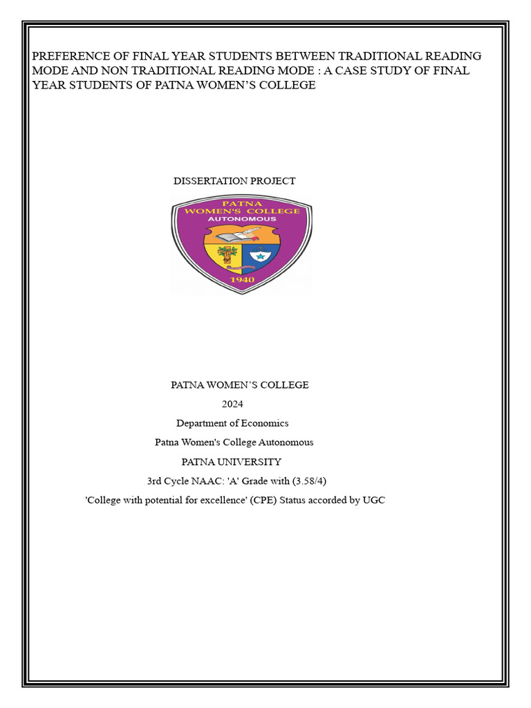 traditional reading mode: A study of students Patna women’s college Patna, Bihar, India" submitted by me is