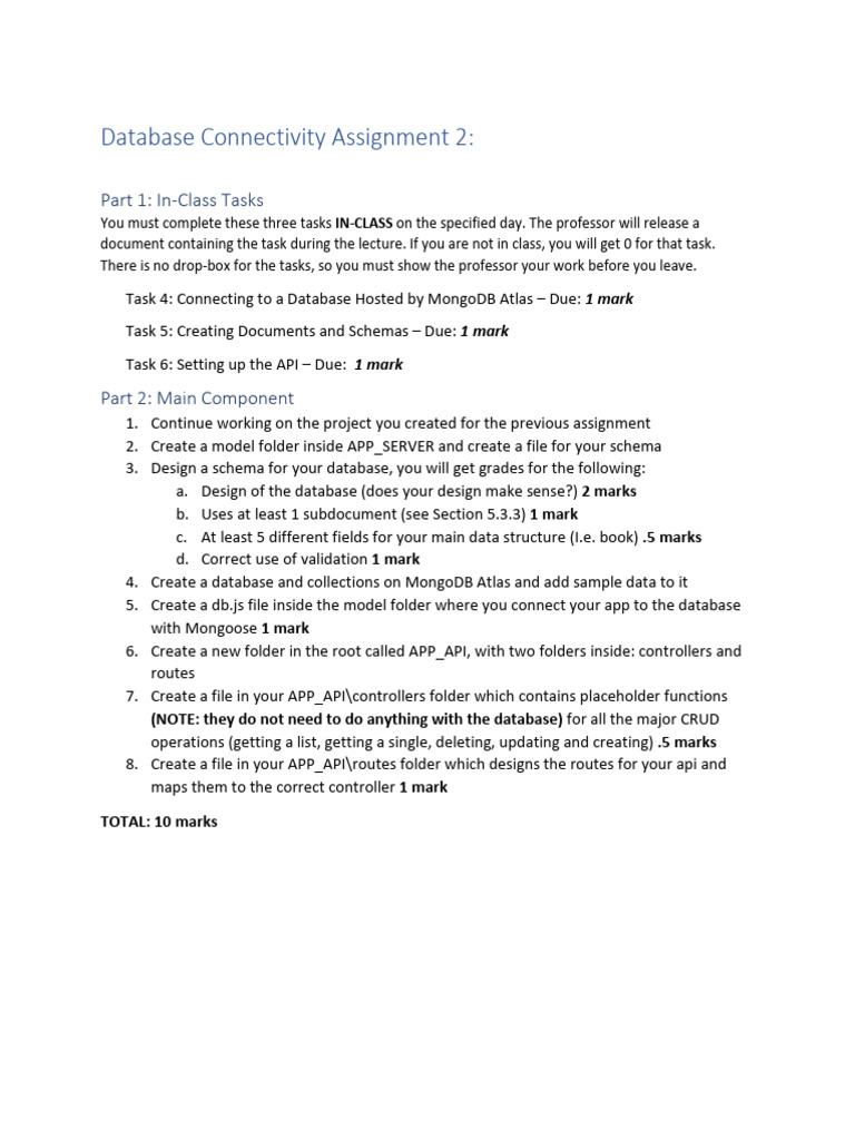 Task 4: Connecting to a Database Hosted by MongoDB Atlas – Due: 1 mark