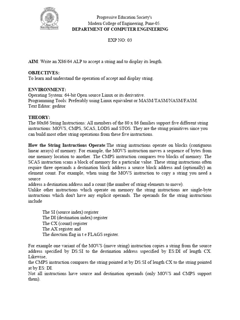 STEP 5: Display the result using “display” procedure. Load length of string in data register.