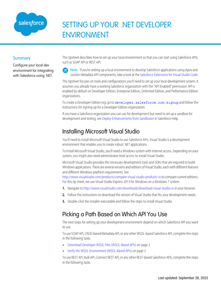 Summary This tipsheet describes how to set up your local environment so that you can start using Salesforce APIs,