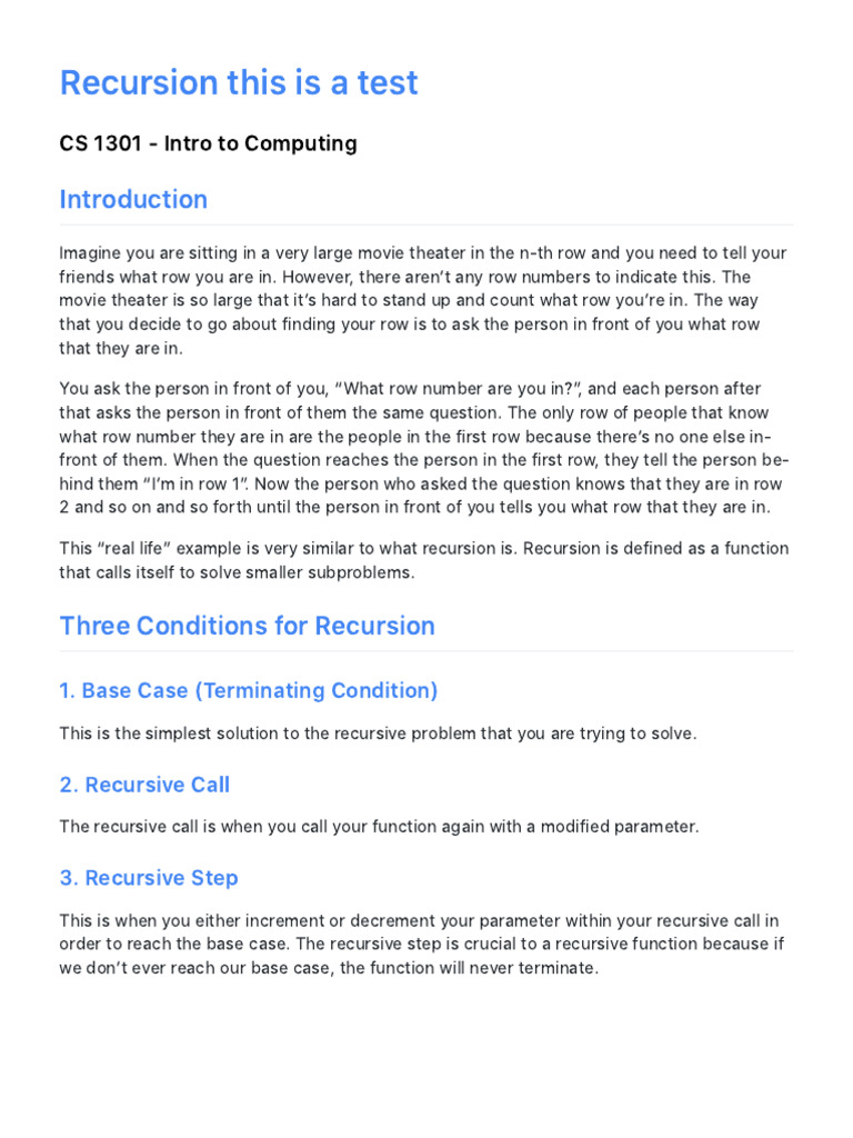 This “real life” example is very similar to what recursion is. Recursion is defined as a function