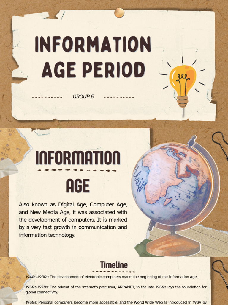 1940s-1950s: The development of electronic computers marks the beginning of the Information Age.