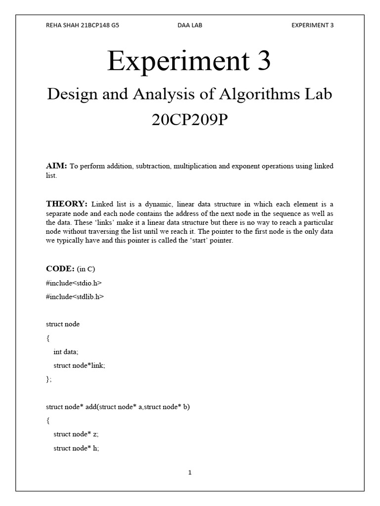 AIM: To perform addition, subtraction, multiplication and exponent operations using linked