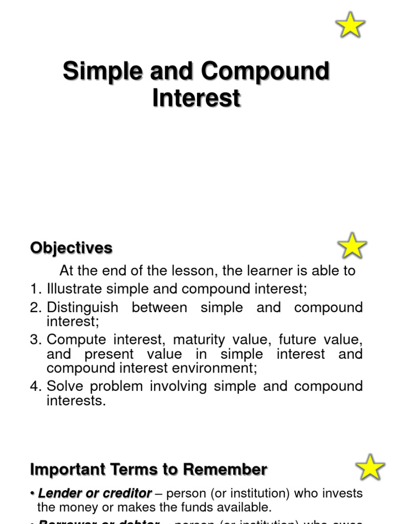 • Compound interest (𝑰𝒄 ) – interest that is computed on