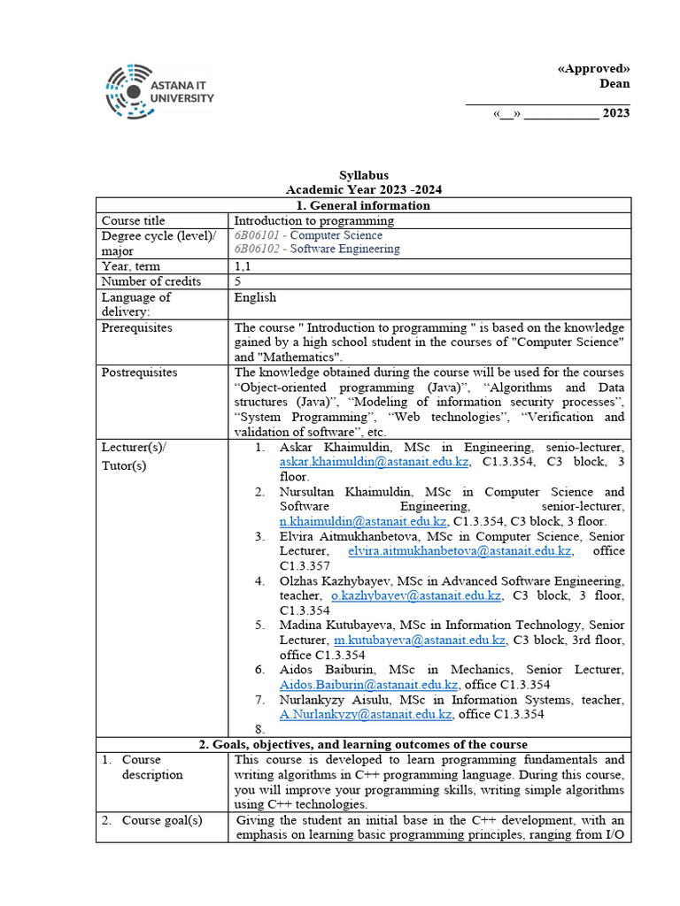 Tutor(s) askar.khaimuldin@astanait.edu.kz, C1.3.354, C3 block, 3
