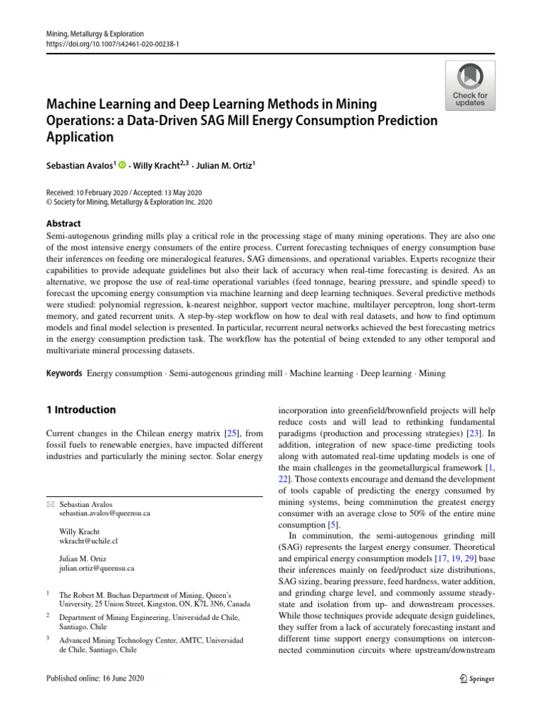 Keywords Energy consumption · Semi-autogenous grinding mill · Machine learning · Deep learning · Mining