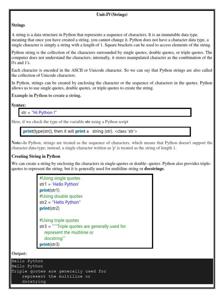 We can create a string by enclosing the characters in single-quotes or double- quotes. Python also provides triple-