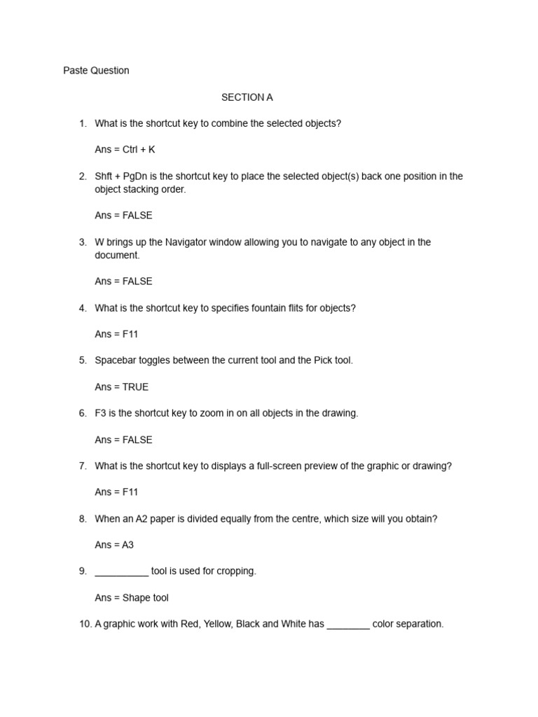 1. Mention ten common tools in Corel draw and state the functions of any five