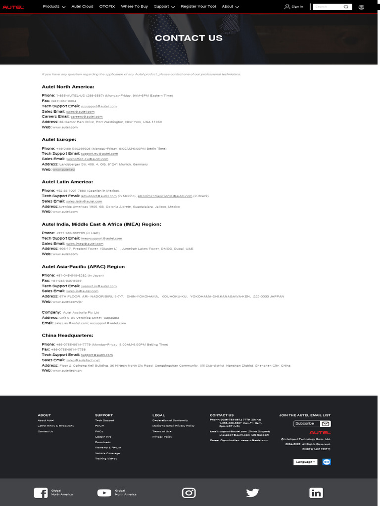 ABOUT SUPPORT LEGAL CONTACT US JOIN THE AUTEL EMAIL LIST