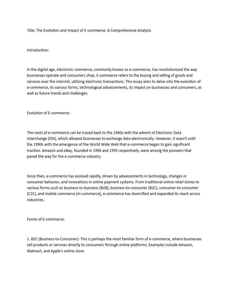 Title: The Evolution and Impact of E-commerce: A Comprehensive Analysis