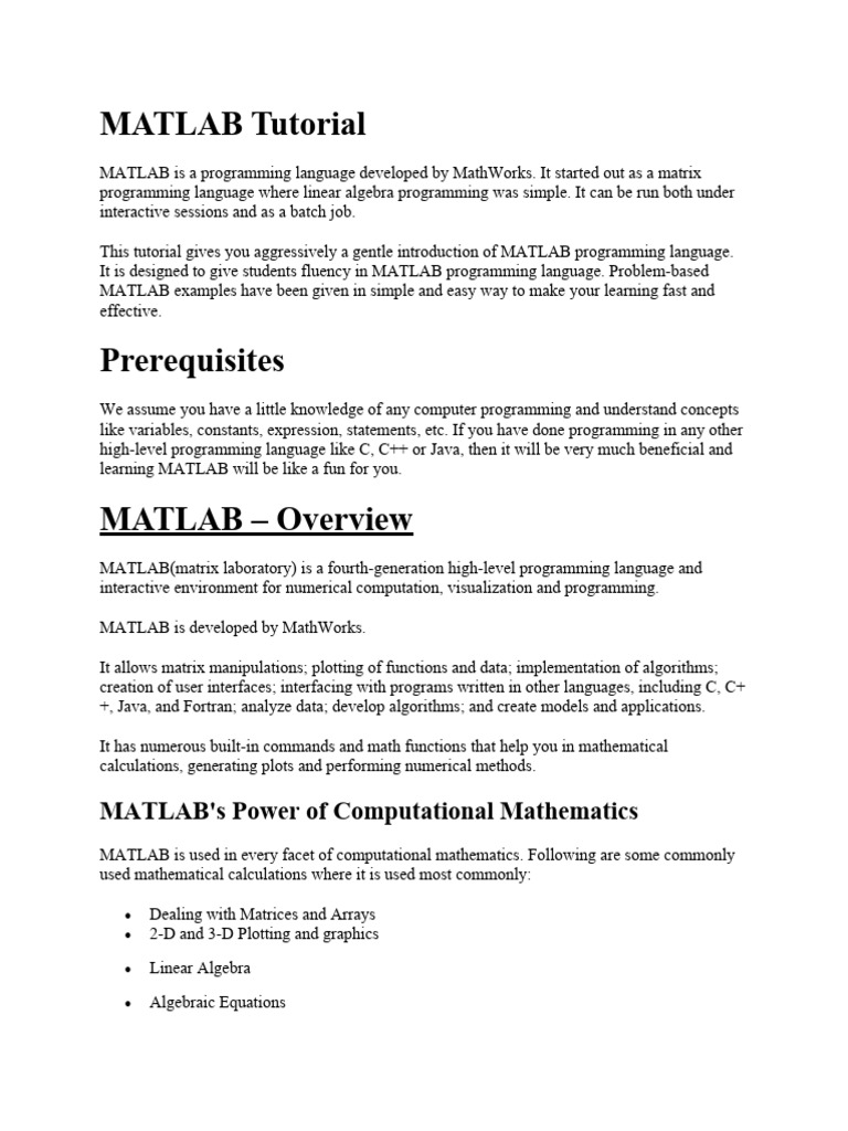 It is designed to give students fluency in MATLAB programming language. Problem-based