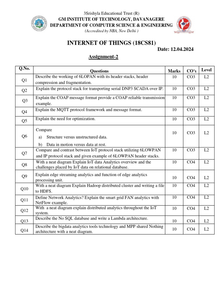 Q4 Explain the MQTT protocol framework and message format. 10 CO3 L2