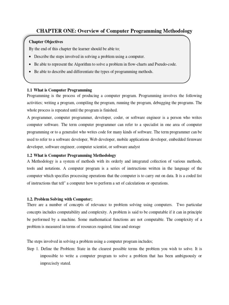 CHAPTER ONE: Overview of Computer Programming Methodology