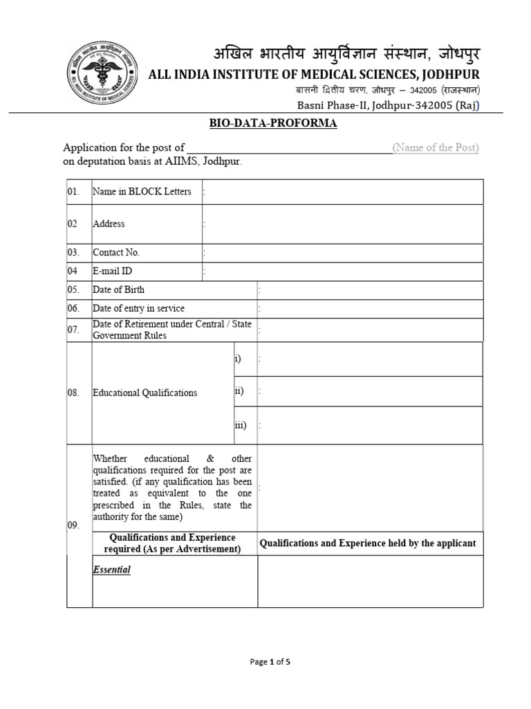ALL INDIA INSTITUTE OF MEDICAL SCIENCES, JODHPUR