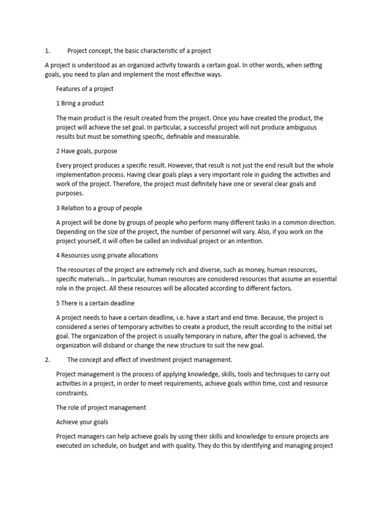 work of the project. Therefore, the project must definitely have one or several clear goals and