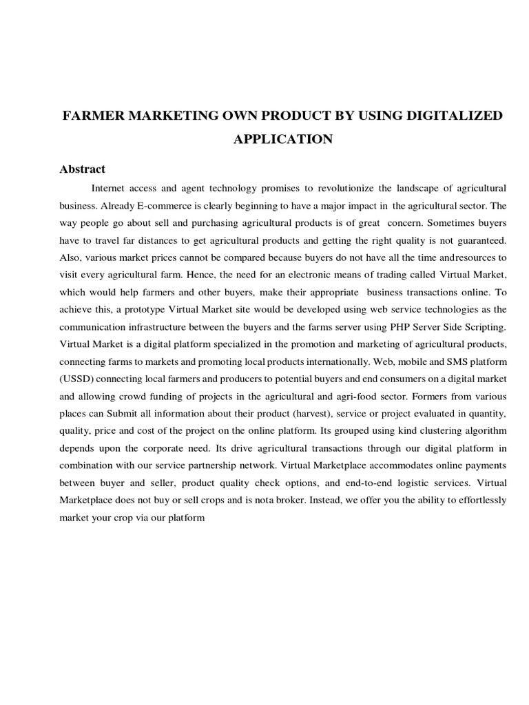 would help farmers and buyers make appropriate business transactions online. The Virtual Market is a
