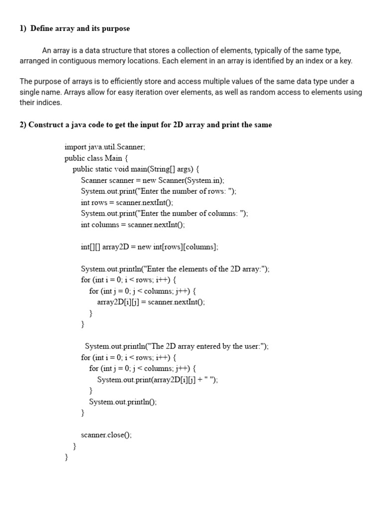 1) Define array and its purpose