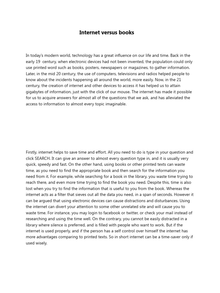 more advantages comparing to printed texts. So in short internet can be a time-saver only if