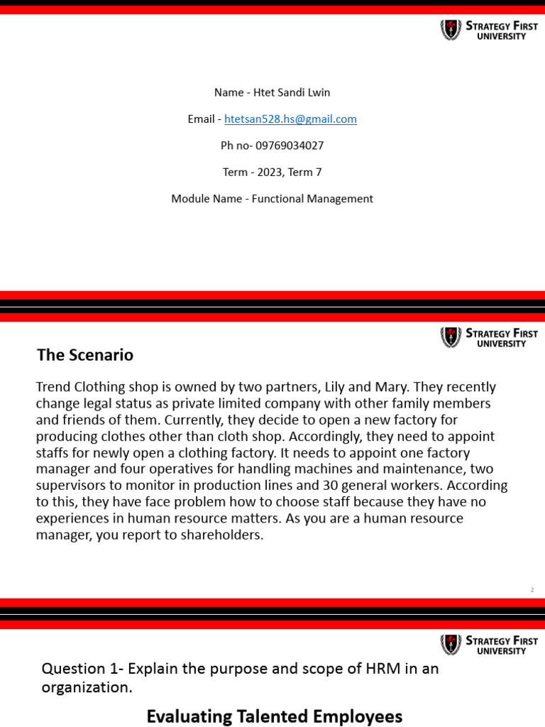 staffs for newly open a clothing factory. It needs to appoint one factory