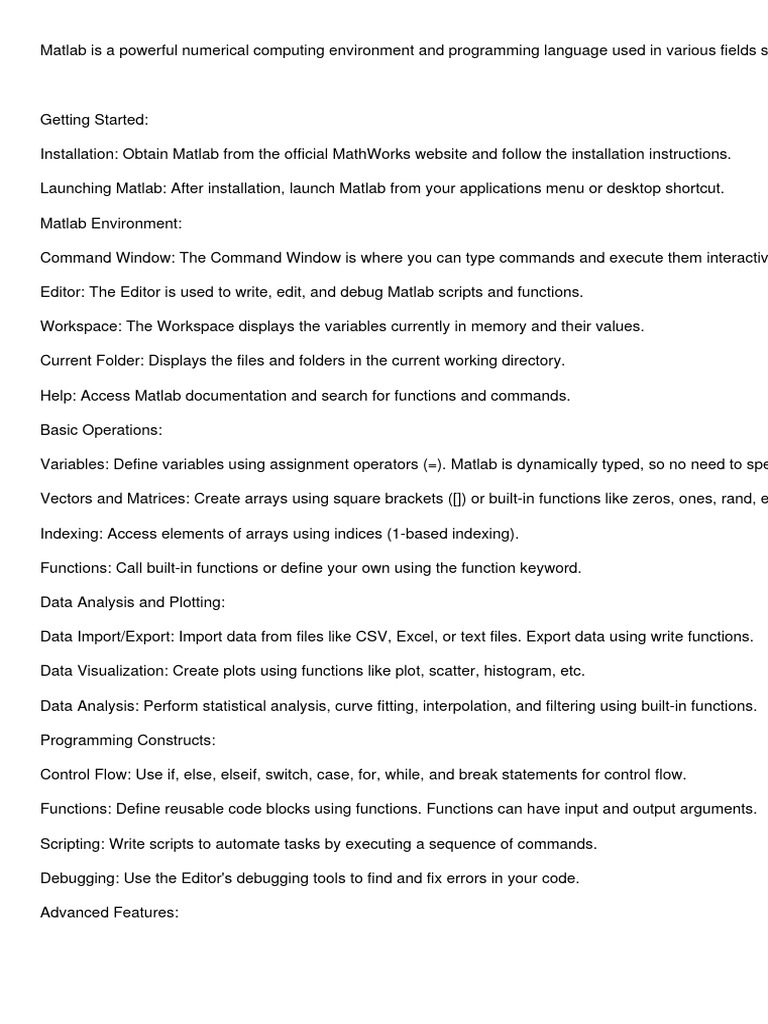 Matlab is a powerful numerical computing environment and programming language used in various fields s