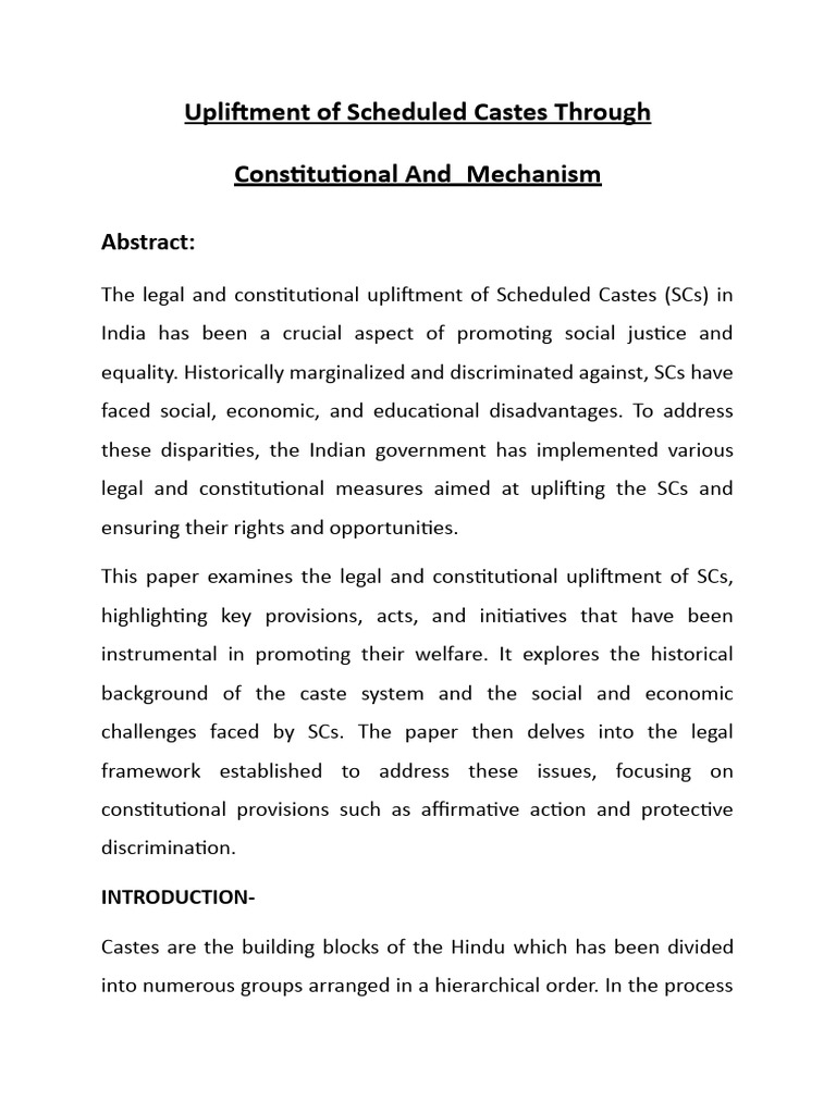 The legal and constitutional upliftment of Scheduled Castes (SCs) in