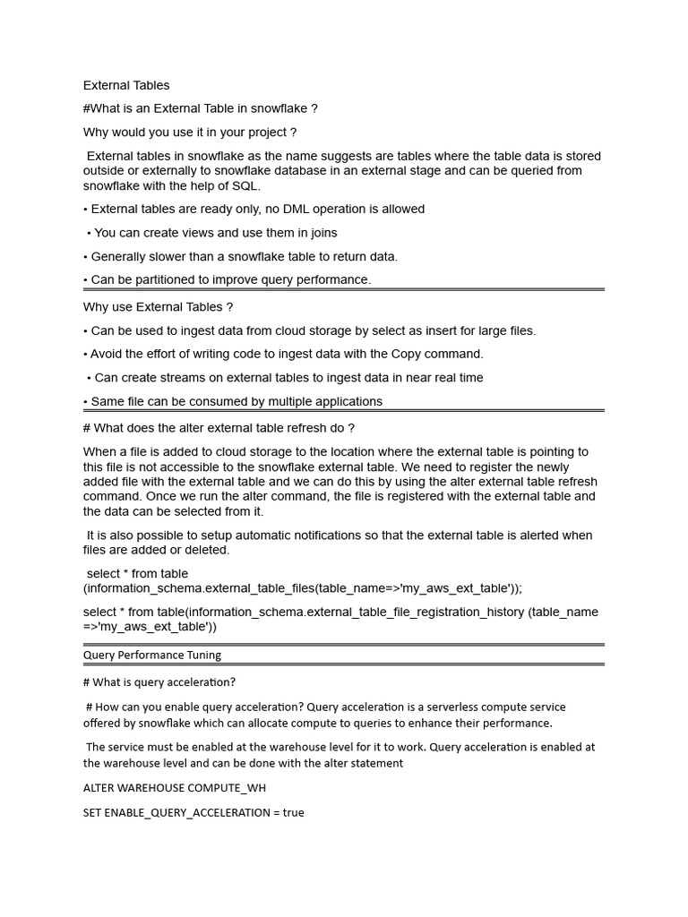 • External tables are ready only, no DML operation is allowed