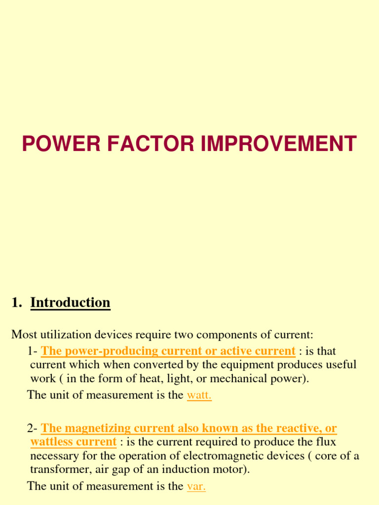 Table 1 Power, reactive power and apparent power at various power factors, for