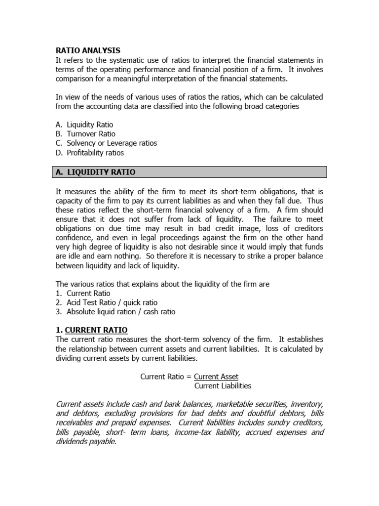 In view of the needs of various uses of ratios the ratios, which can be calculated