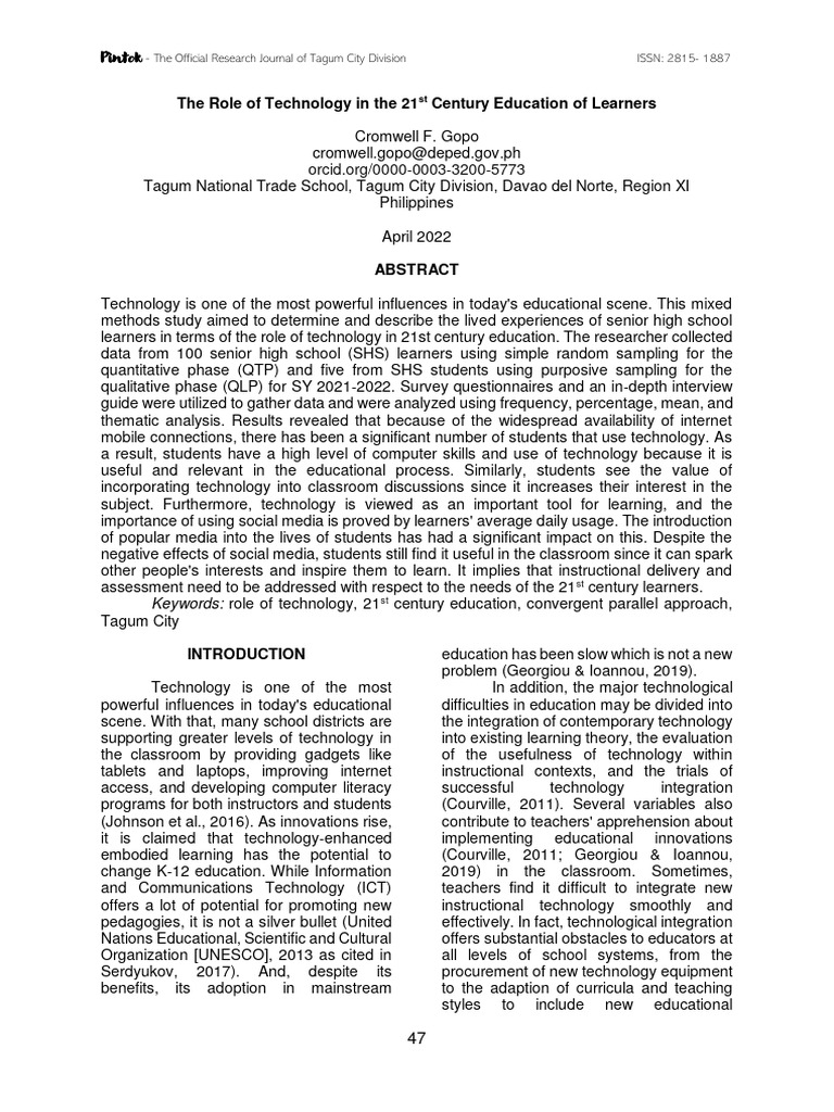 Keywords: role of technology, 21st century education, convergent parallel approach,