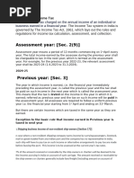 Previous Year and Assessment Year