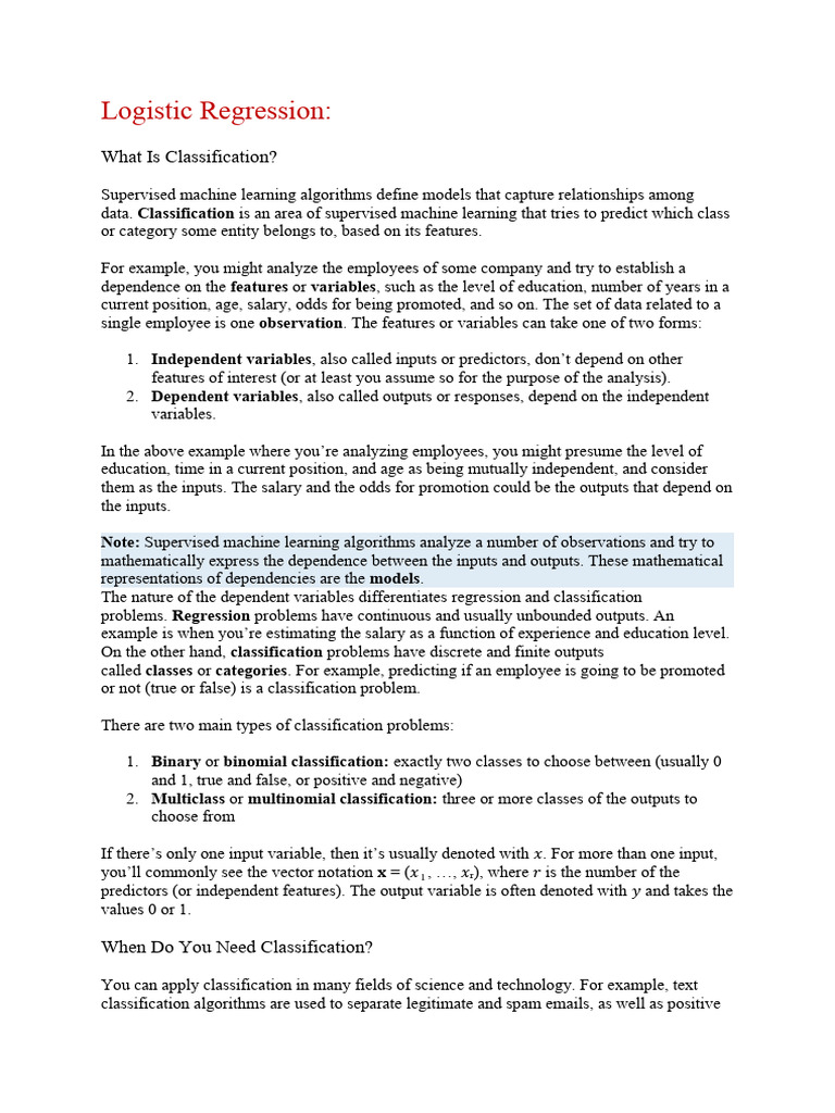 In this tutorial, you’ll see an explanation for the common case of logistic regression applied