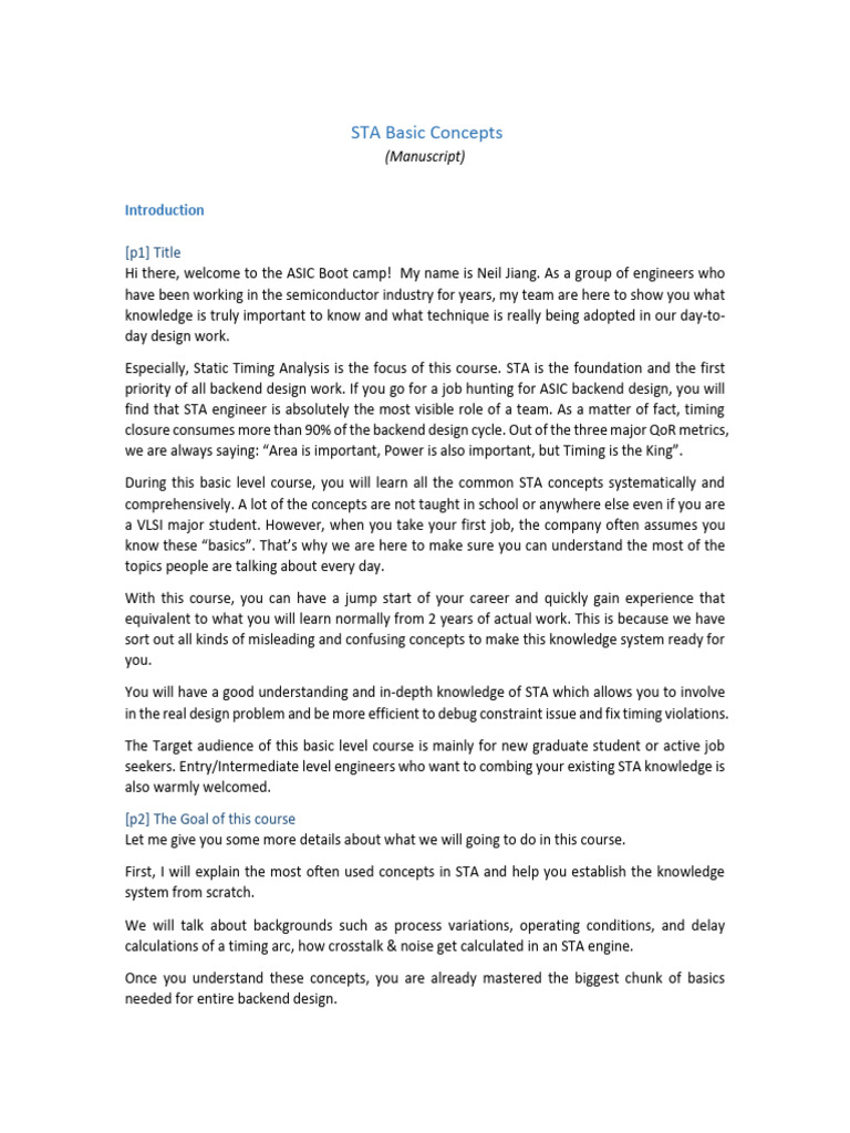 Especially, Static Timing Analysis is the focus of this course. STA is the foundation and the first
