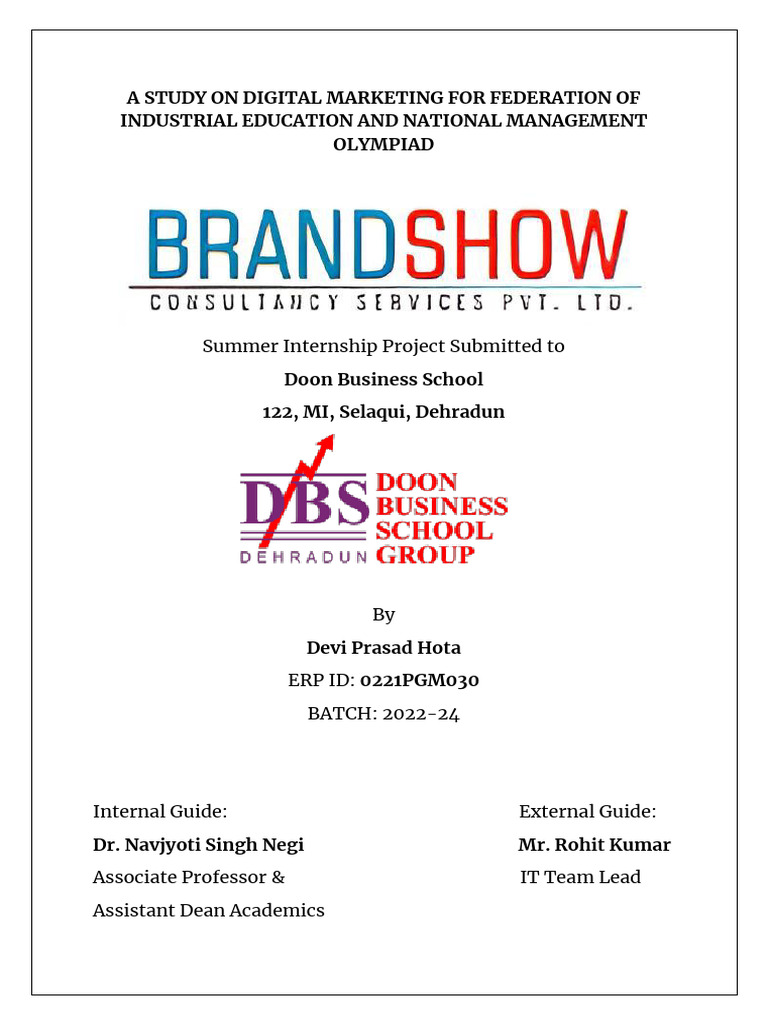 I, Devi Prasad Hota, roll no. 0221PGM030, student of PGDM of Doon Business School,