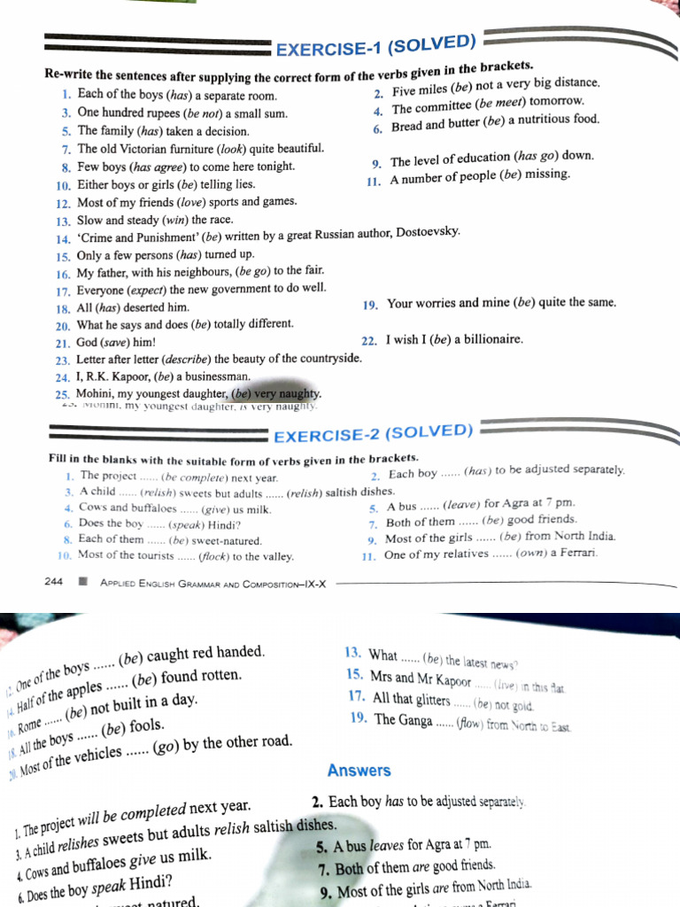 18. All(has) deserted him. 19. Your worries and mine (be) quite the same.