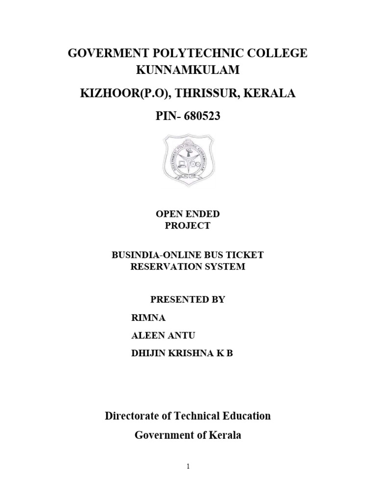 the development of the BUSINDIA ONLINE Bus Ticket Reservation System. This system aims to provide a