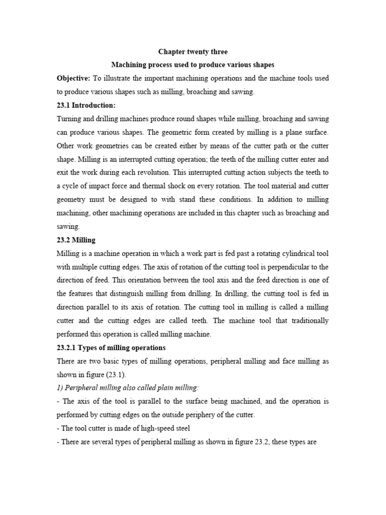 can produce various shapes. The geometric form created by milling is a plane surface.