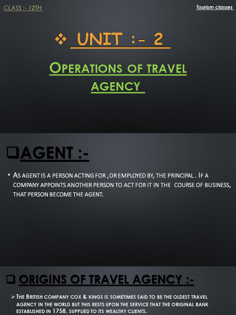 ❑ ORIGINS OF TRAVEL AGENCY :-