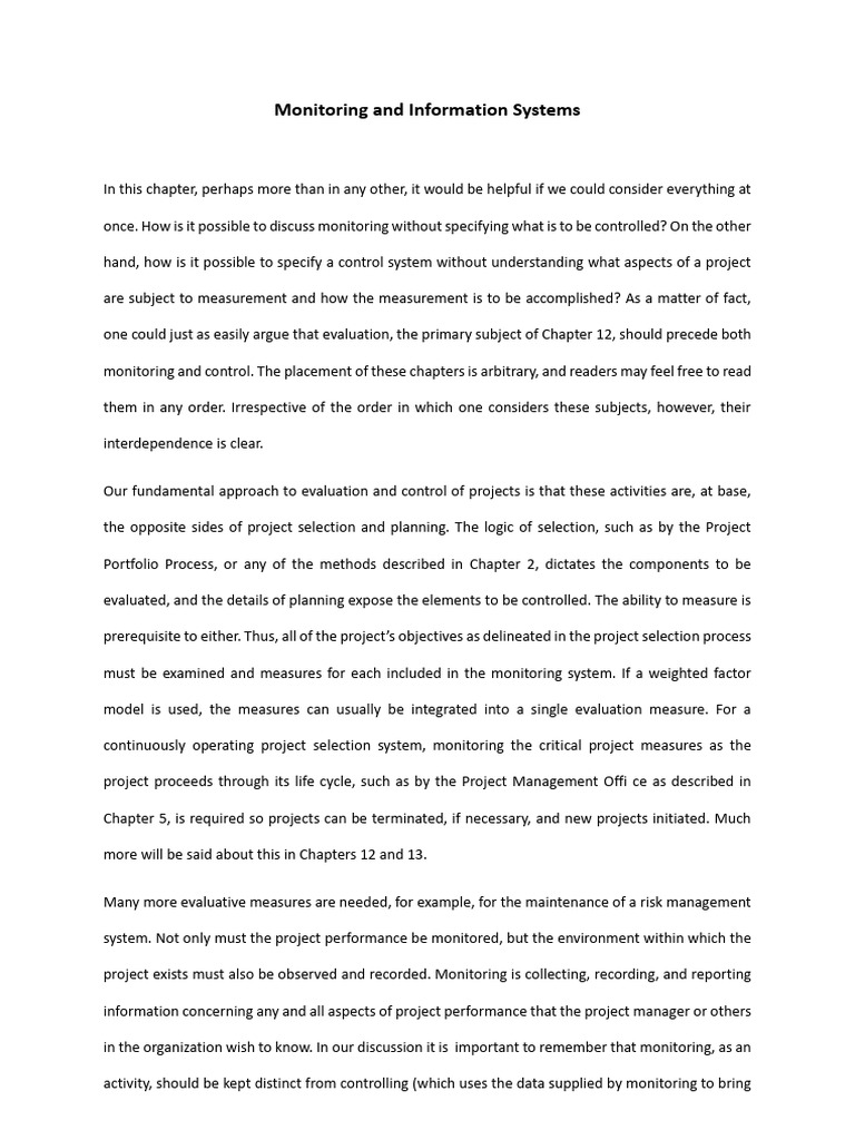project exists must also be observed and recorded. Monitoring is collecting, recording, and reporting