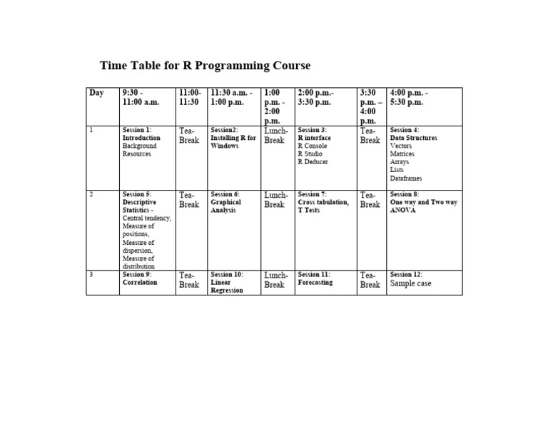3 Session 9: Tea- Session 10: Lunch- Session 11: Tea- Session 12: