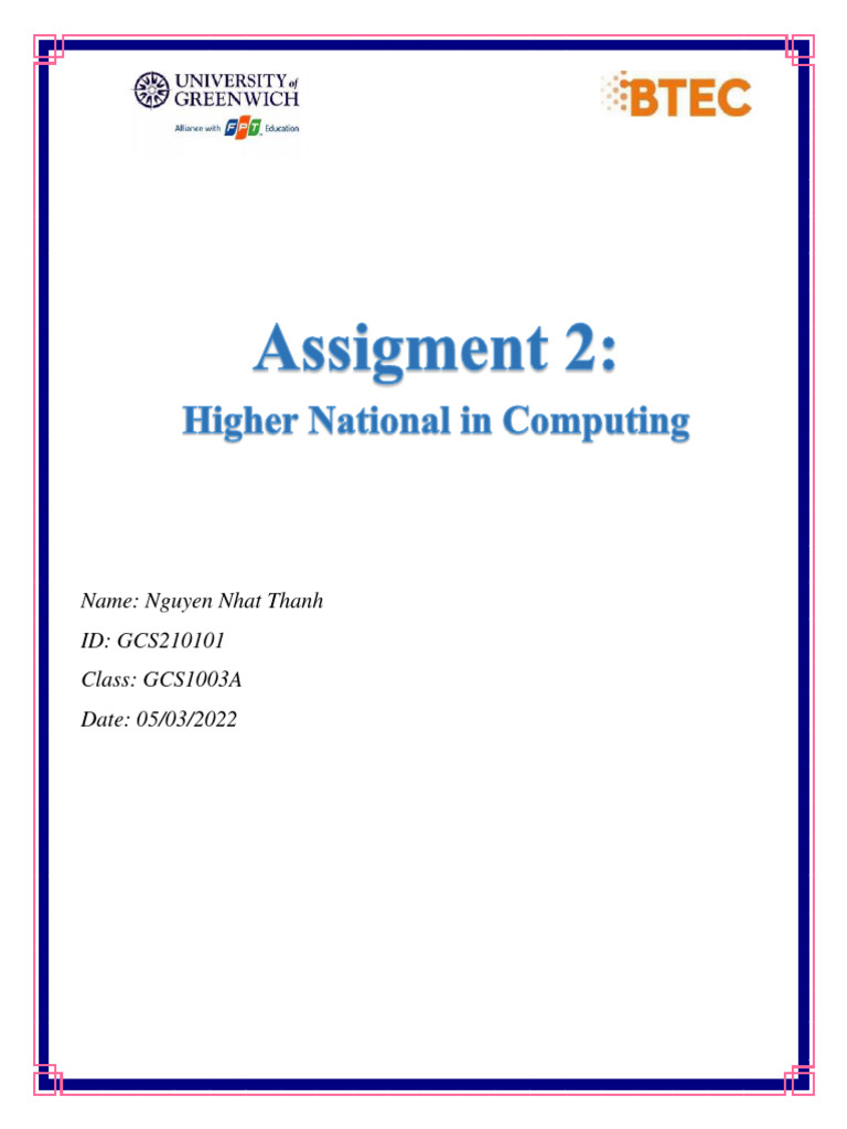 Student Name Nguyen Nhat Thanh Student ID GCS210101