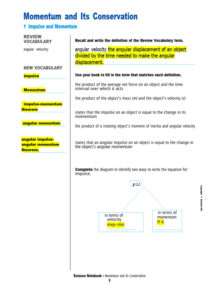Science Notebook • Momentum and Its Conservation