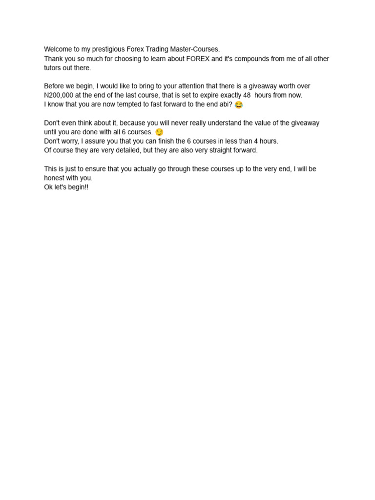 Thank you so much for choosing to learn about FOREX and it's compounds from me of all other
