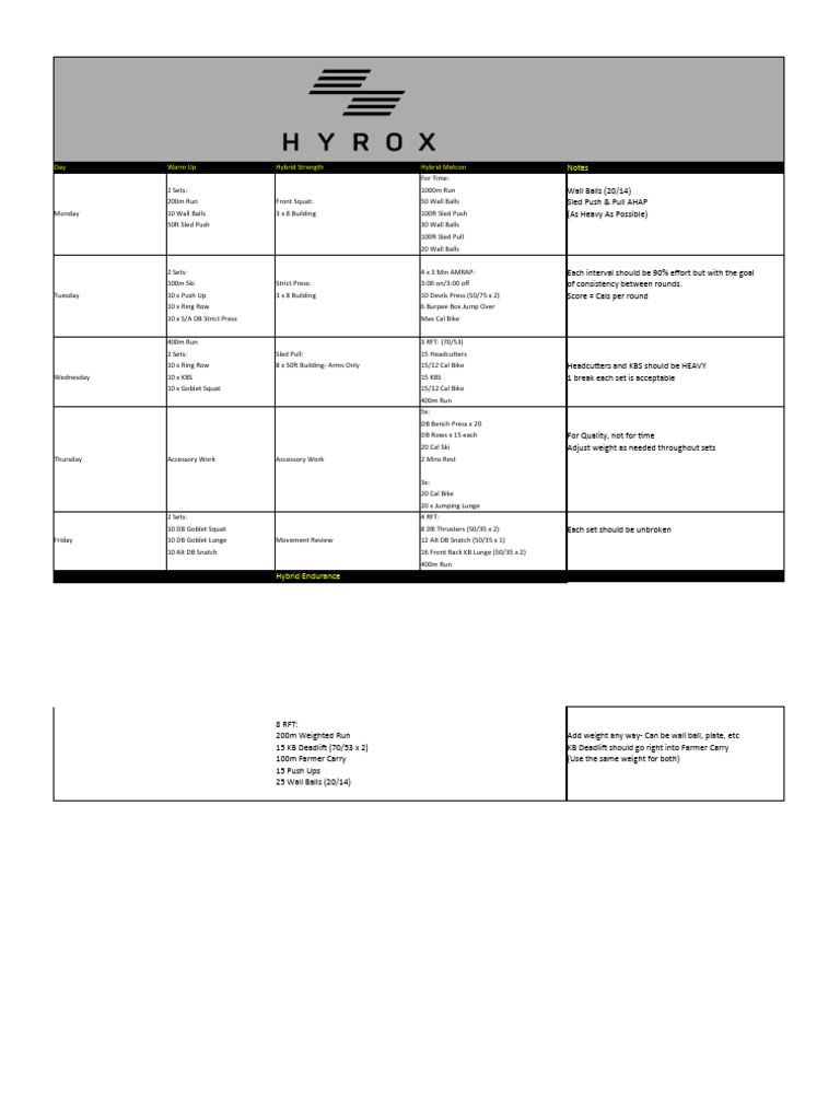 Day Warm Up Hybrid Strength Hybrid Metcon Notes