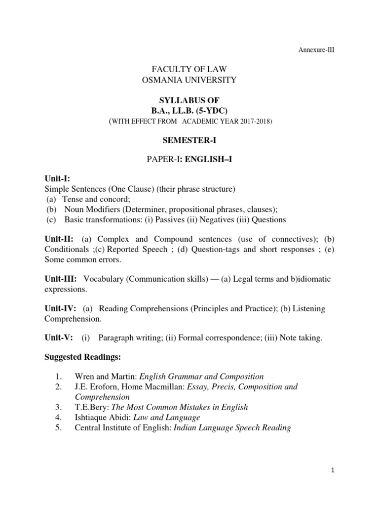 Scheme of the Syllabus of B.A.,LL.B.(5-YDC)