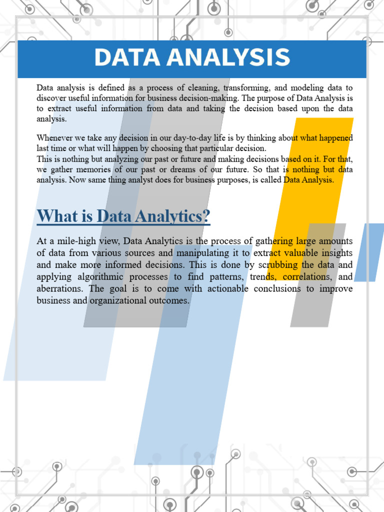 At a mile-high view, Data Analytics is the process of gathering large amounts