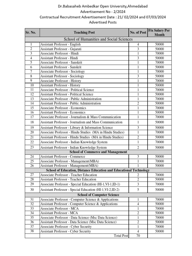 25 Associate Professor - Management(MBA) 1 70000