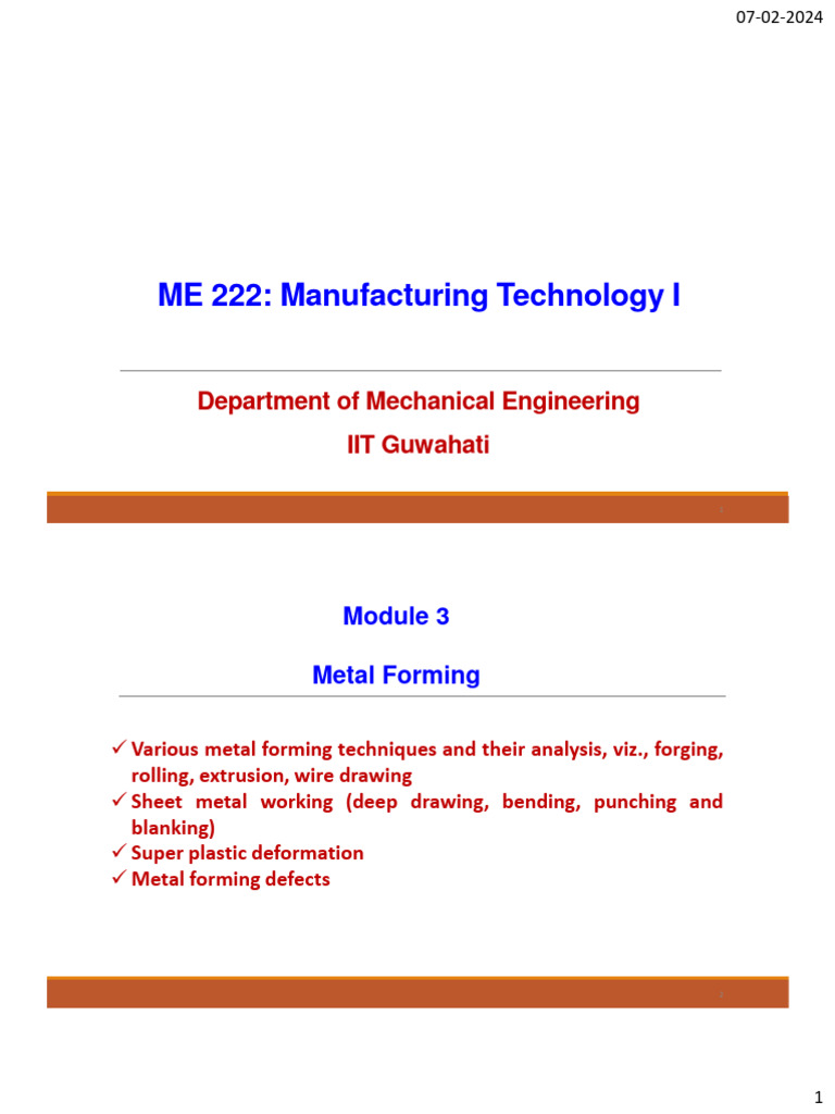 Common forming processes: Rolling, Forging, Drawing, Deep drawing, Bending and Extrusion
