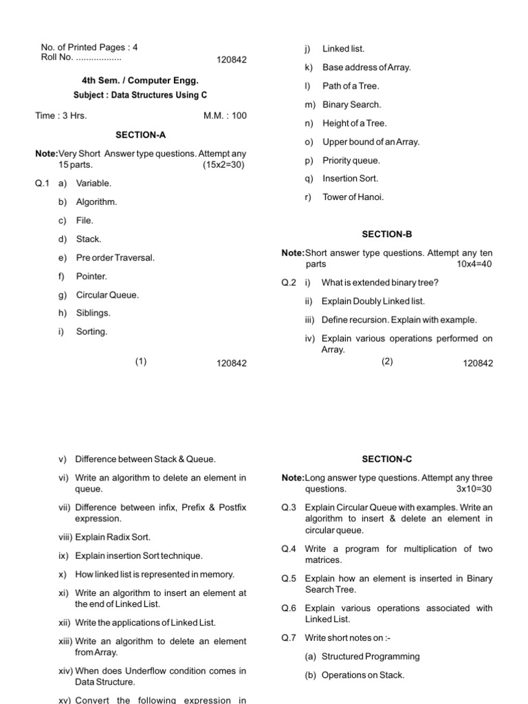 No. of Printed Pages : 4 j) Linked list.