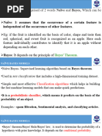 The Naïve Bayes algorithm is comprised of two words Naïve and Bayes, Which can be described as: