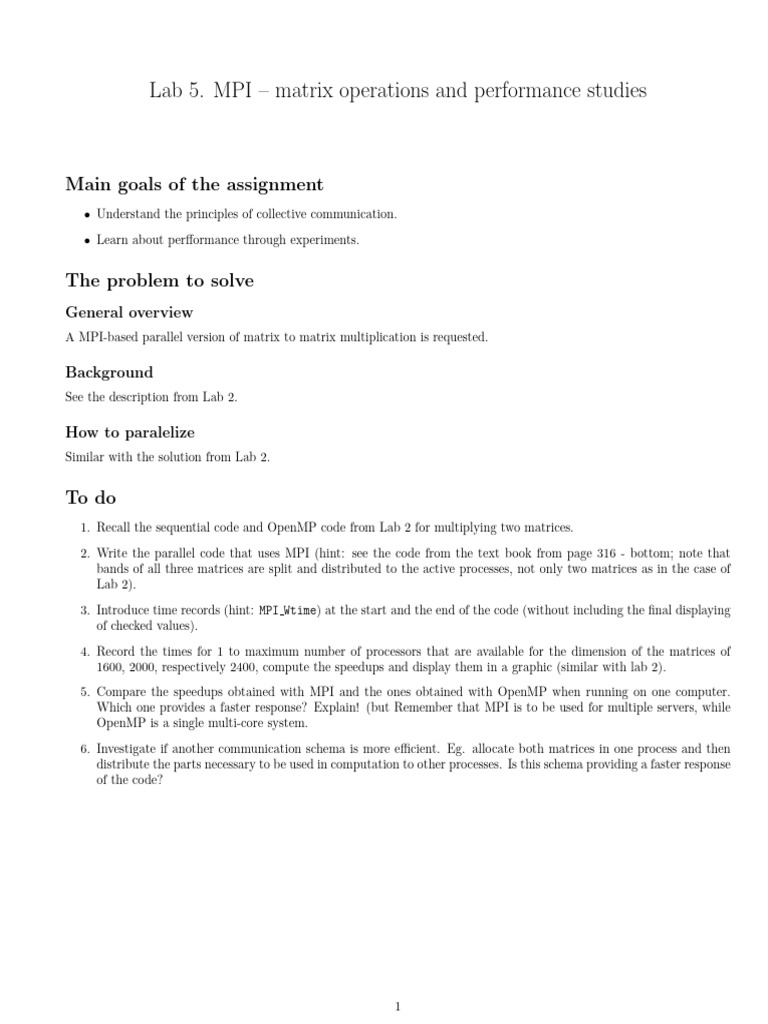 A MPI-based parallel version of matrix to matrix multiplication is requested.